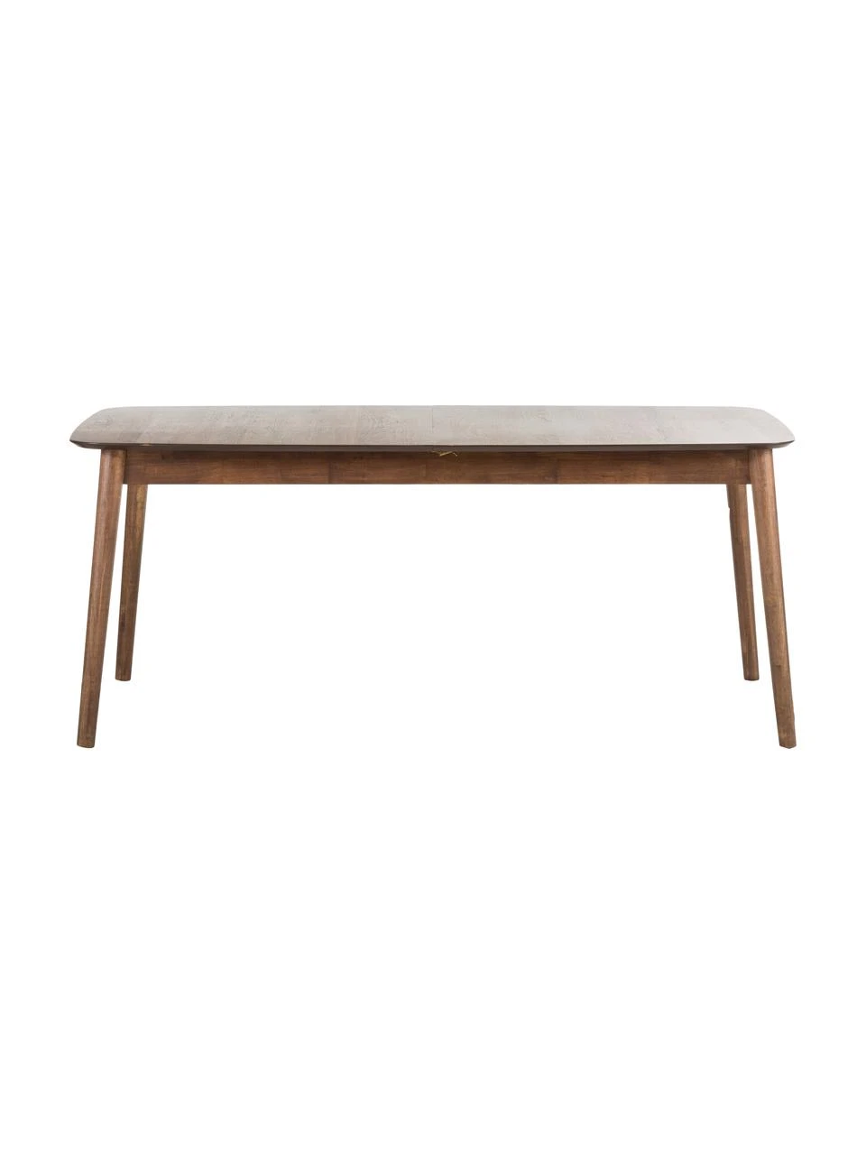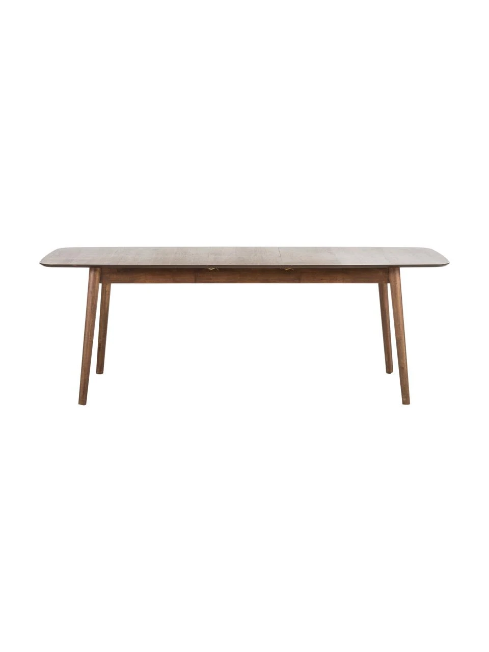 Der Tisch kann um 40 cm verlängert werden, indem die beiden Tischhälften auseinandergezogen werden und die im Tisch integrierte Verlängerungsplatte herausgeklappt wird.