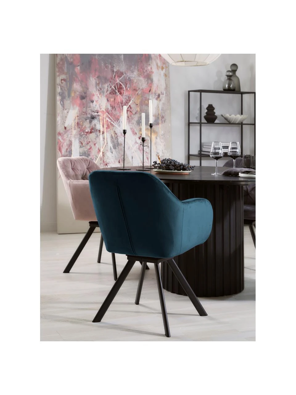 – Drehbarer Samt-Armlehnstuhl mit Rautenheftung