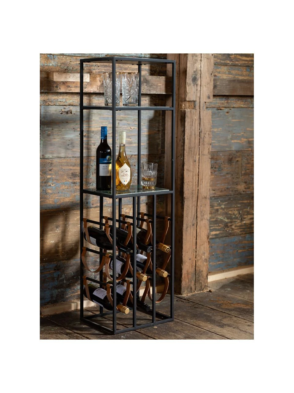 Weinregal mit zwei Marmor-Regalböden und neun Flaschenhaltern