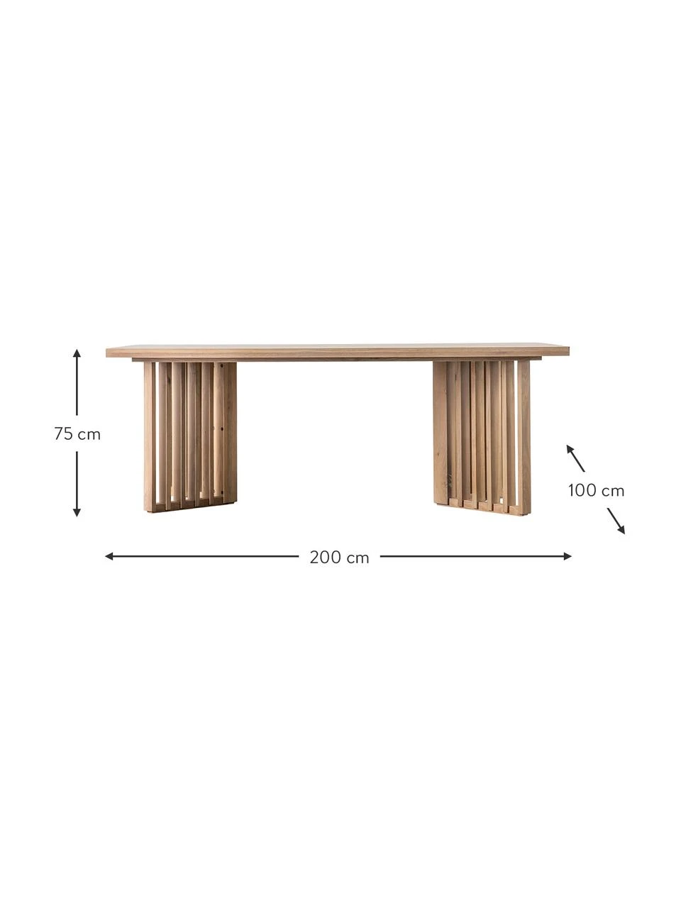 B 200 cm, H 75 cm, T 100 cm