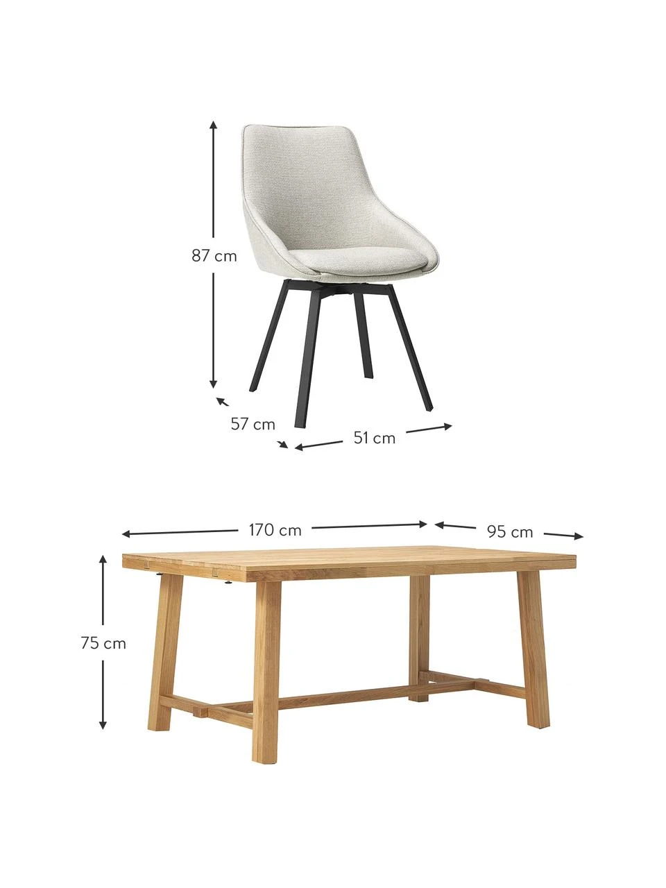 Gesamtmaße des Esstisches: