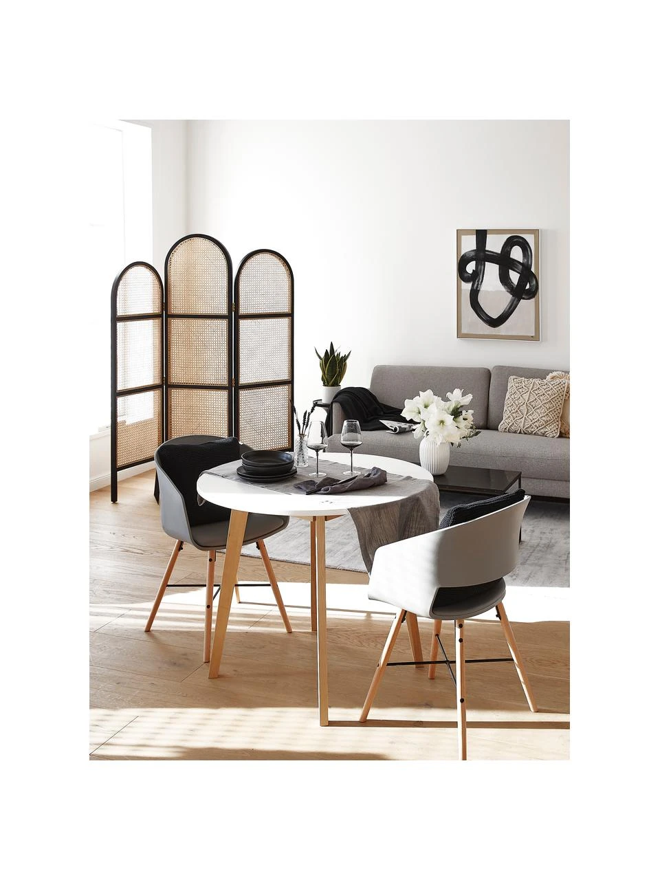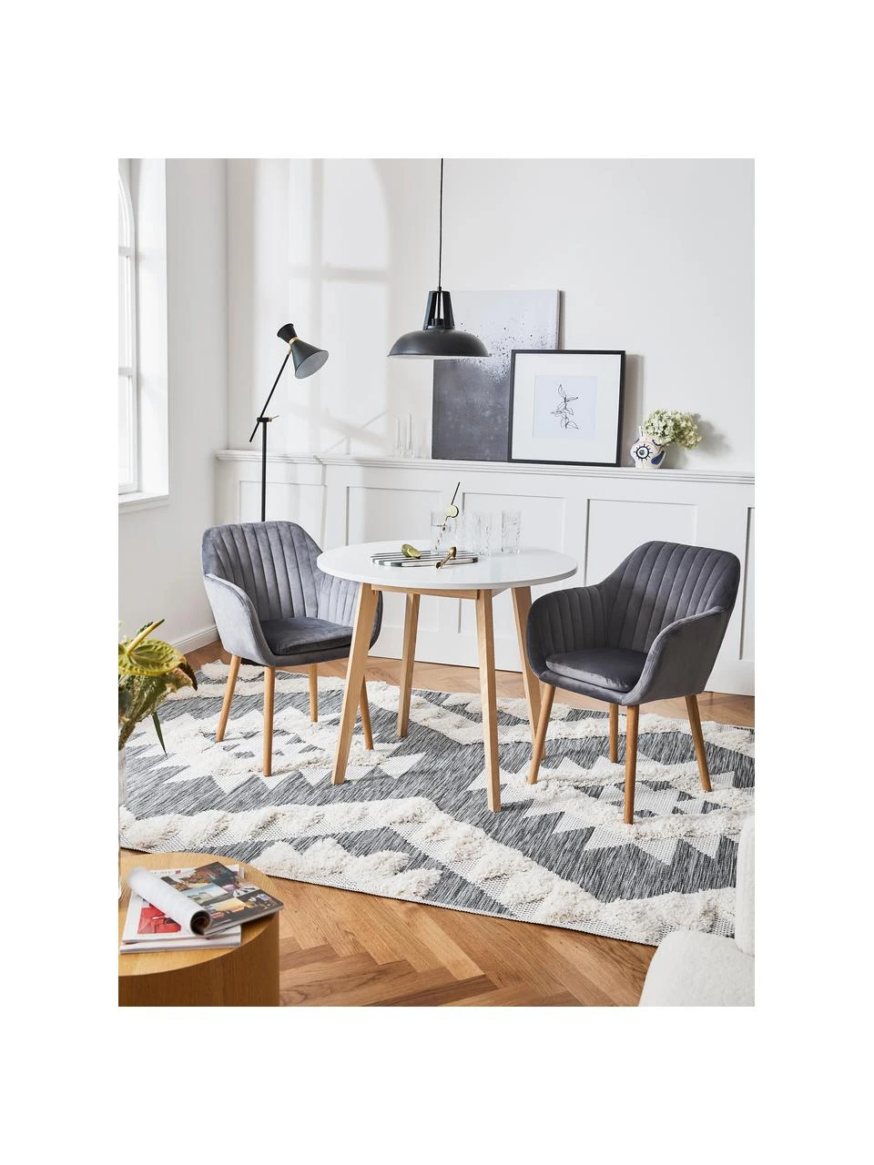– Runder kleiner Esstisch mit weiß matt lackierter Tischplatte