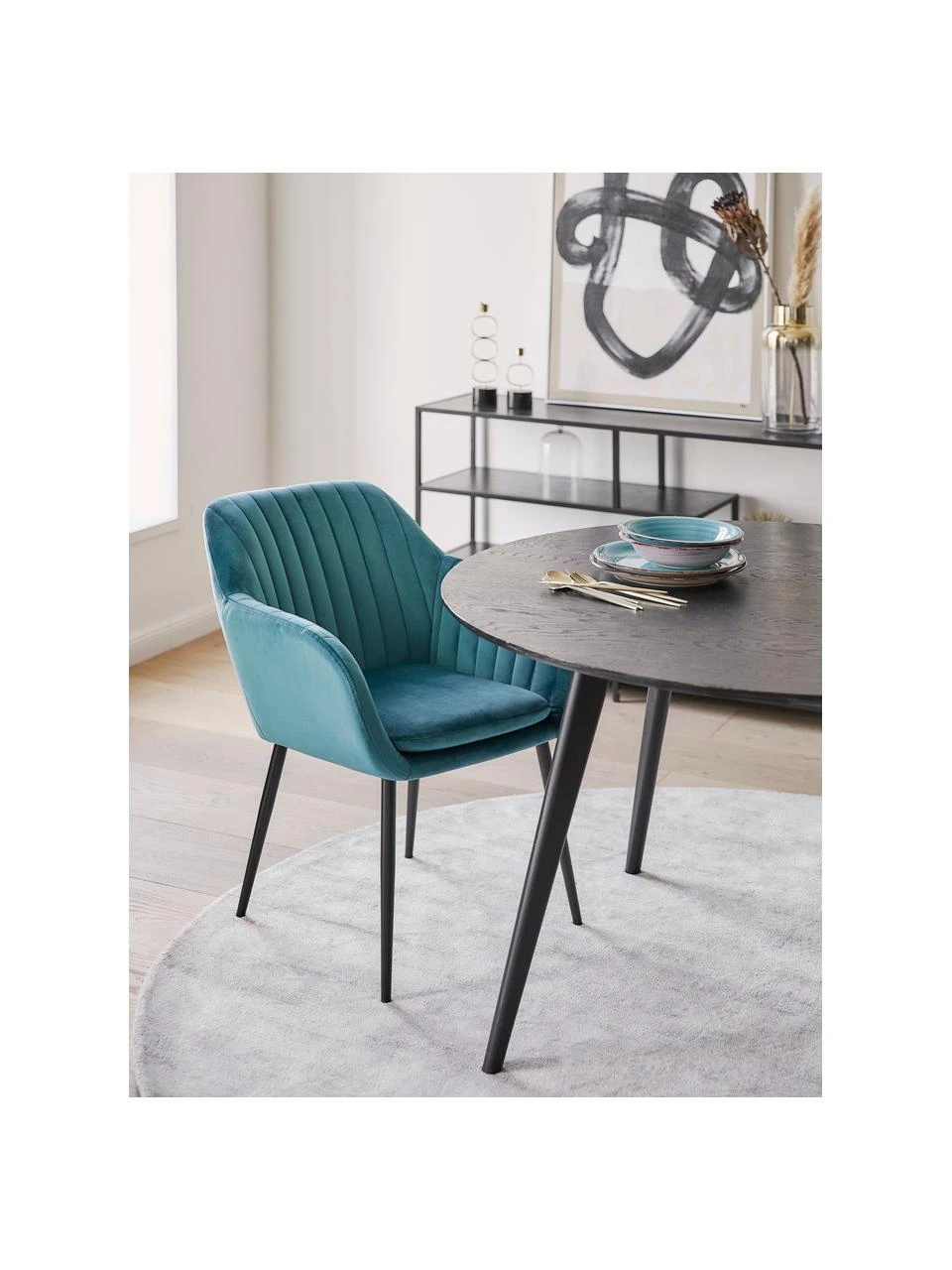 – Schmaler Samt-Armlehnstuhl mit kleiner Sitzfläche