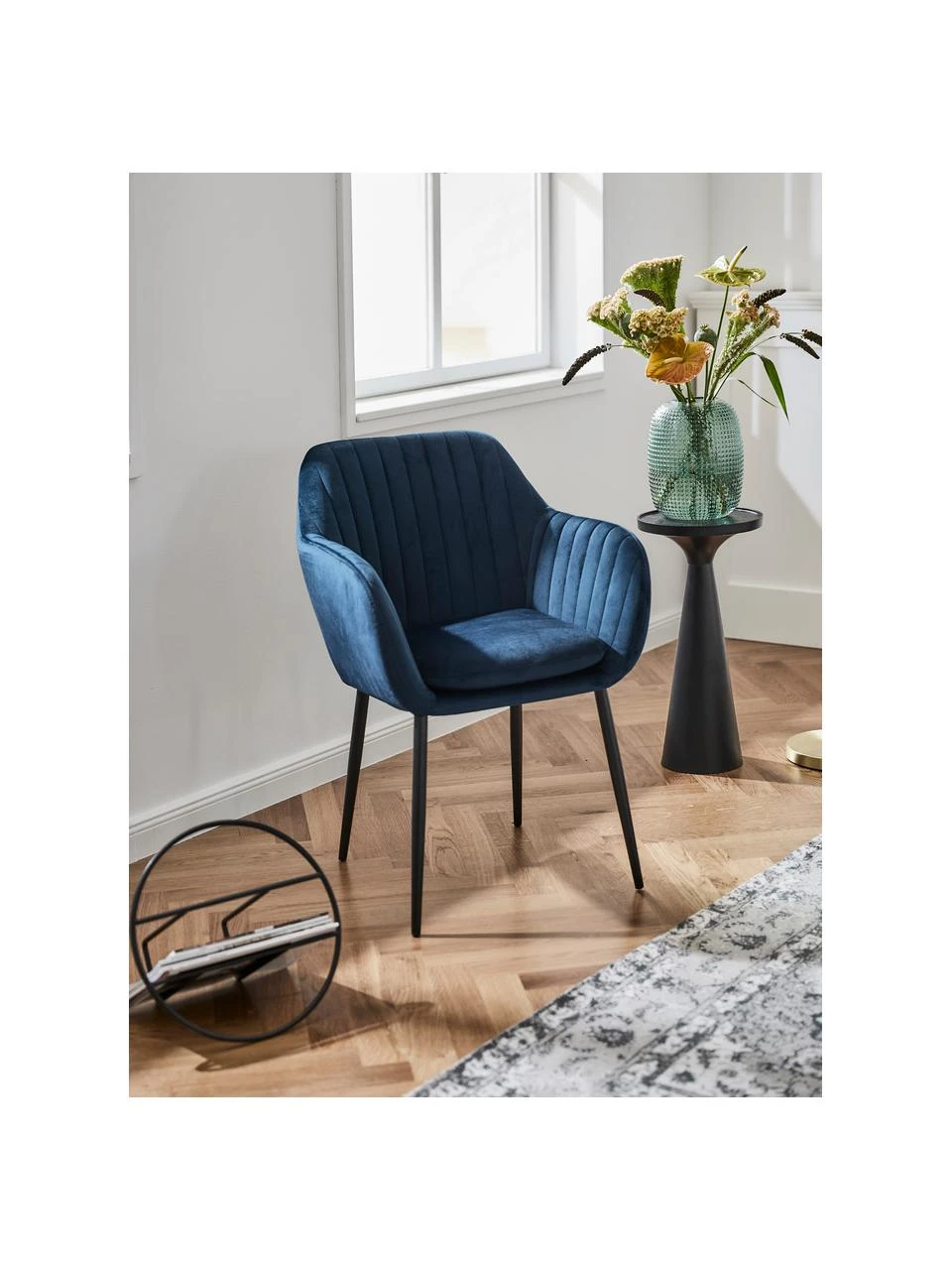 Samt-Armlehnstuhl Emilia in Blau mit Metallbeinen, B 57 x T 59 cm -Esszimmer Verkäufe Samt Armlehnstuhl Emilia in Blau mit Metallbeinen 4