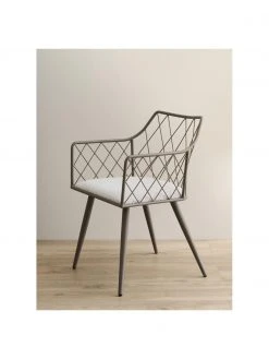 Metall-Armlehnstühle Heidie in Taupe mit Bouclé-Sitzkissen, 2 Stück, B 53 x T 56 cm