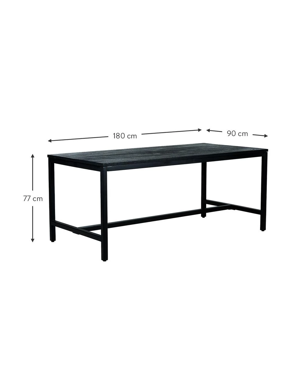 Tischplatte: Massives Mangoholz, gebürstet, schwarz lackiert
