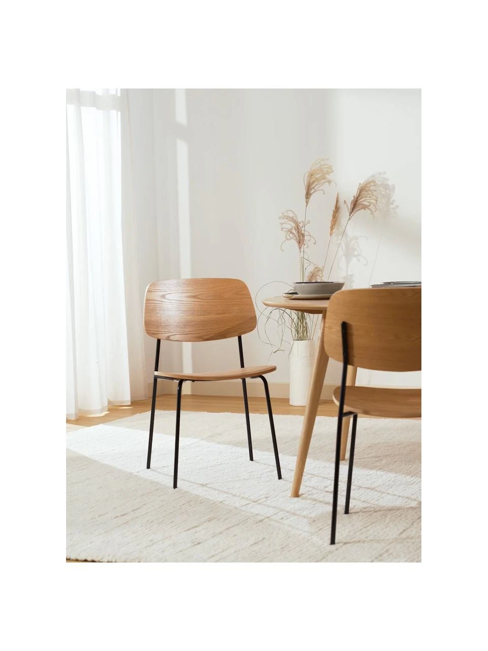 Sitzfläche: Sperrholz mit Eschenholzfurnier, lackiert