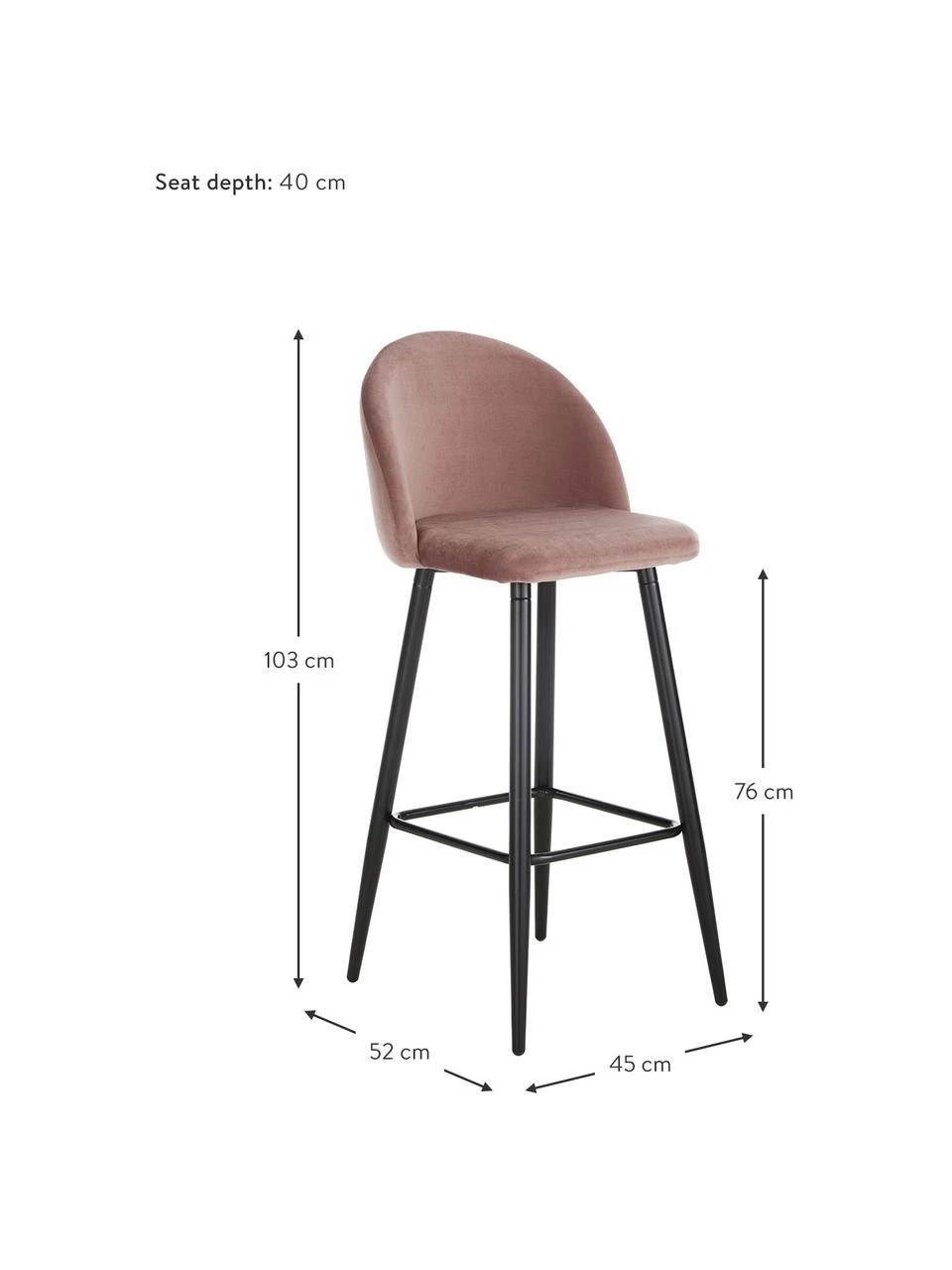 B 40 cm, H 76 cm, T 40 cm