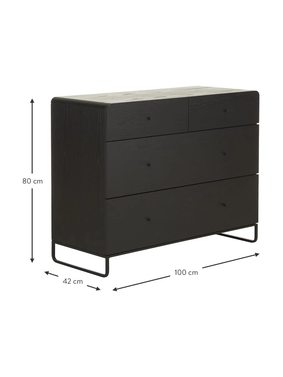 B 100 cm, H 80 cm, T 42 cm