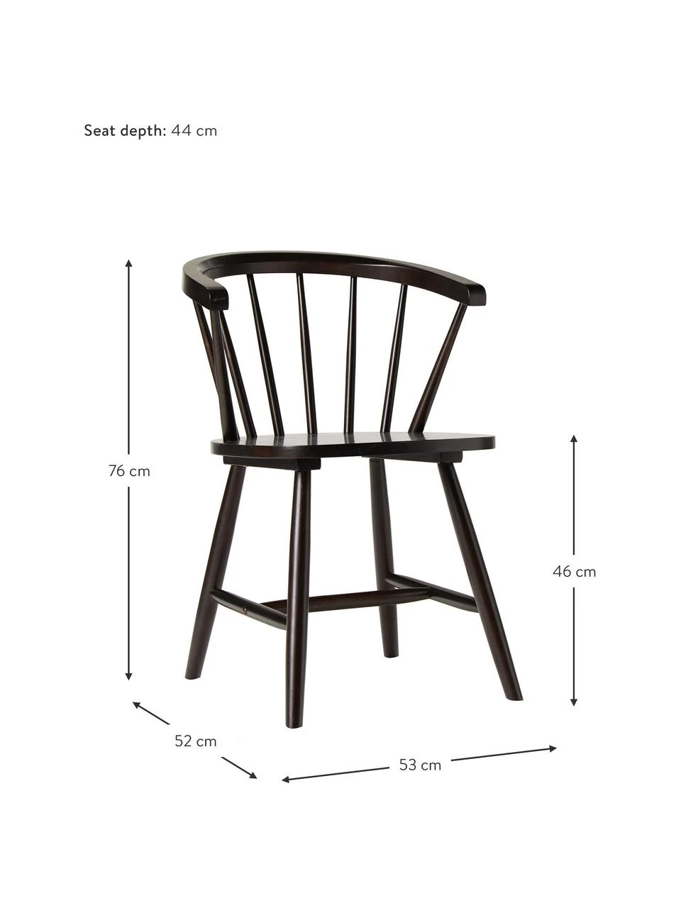 Sitzmaße: B 43 cm, H 46 cm, T 44 cm
